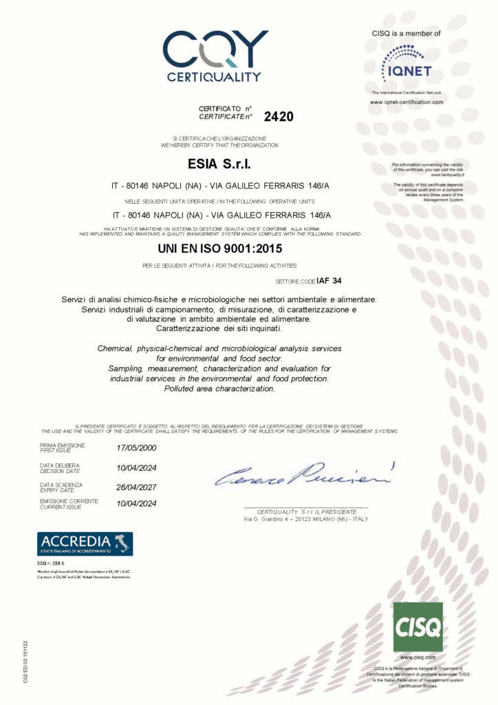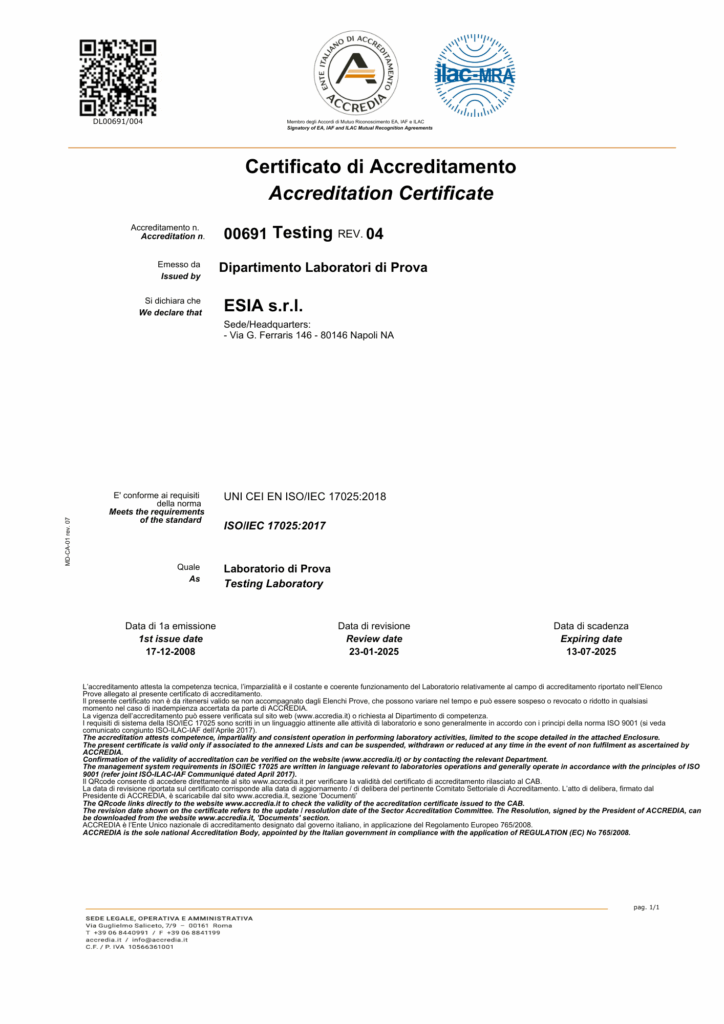 Strumentazione avanzata e accreditamento ACCREDIA per analisi conformi agli standard normativi.